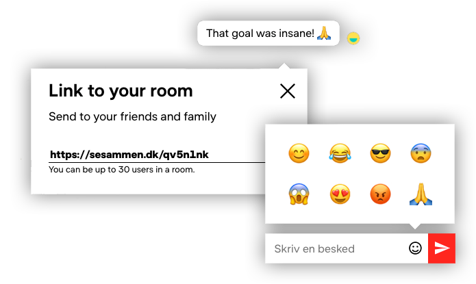 Flinge adds a layer of social features right onto your platform. Using personalized rooms and real-time chat, users can watch your content together with friends or family, while keeping social distance.